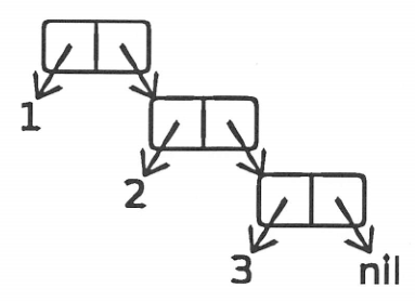 (cons 1 (cons 2 (cons 3 'nil))) ; 末尾がnilなので(1 2 3)というリストが返ります。car関数とcdr関数