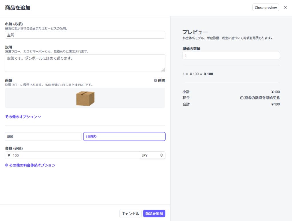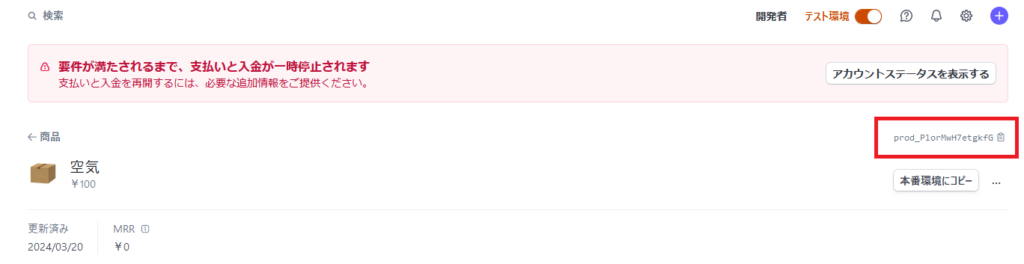 商品データはStripeのAPIから拾ってくる仕組みにするので先に商品登録まで済ませてしまいましょう。