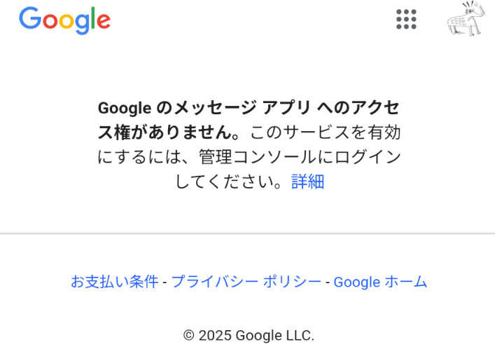 Google Workspaceのアカウントでは、Android標準のメッセージアプリ(SMSを見るやつ)にはログインできません。