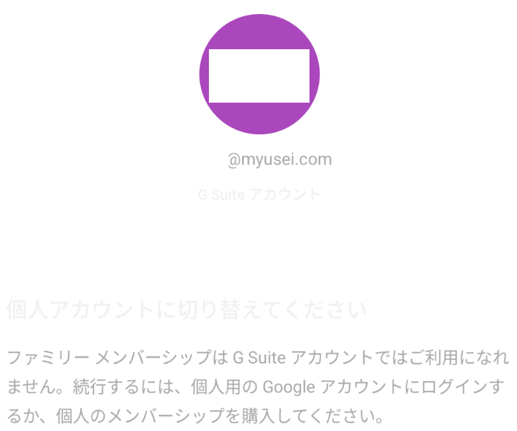 ビジネスアカウント使っているファミリーがいたっていいじゃないですか、Googleさん。