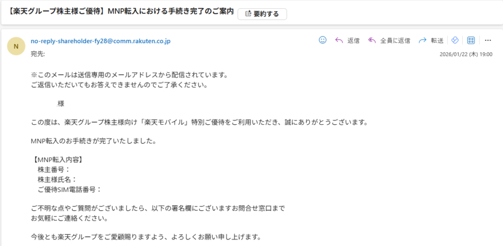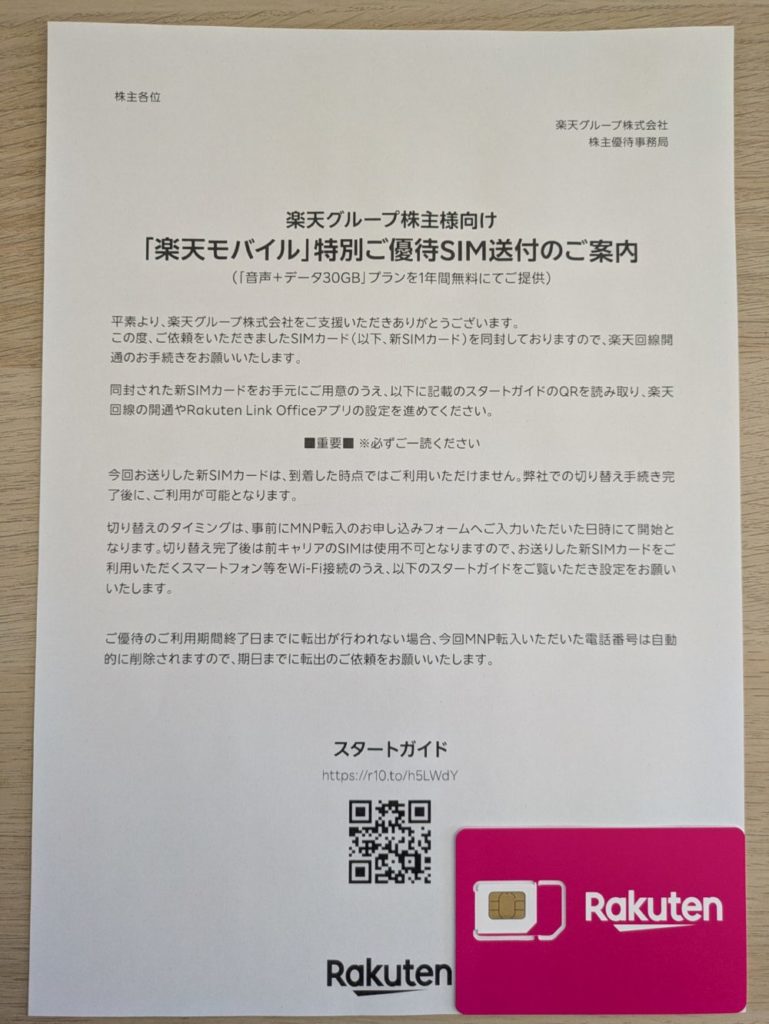 楽天グループの株主優待(楽天モバイル 6ヶ月無料 継続要件あり)が、契約済みの楽天モバイルの電話番号の引き継ぎや他社からのMNPが出来るようになりました。